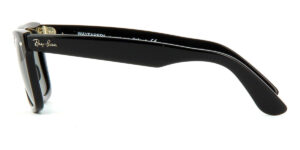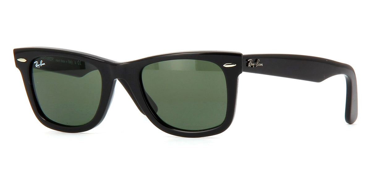 This wayfarer Ray-Ban sunglass comes in a black frame with g-15 green lenses.