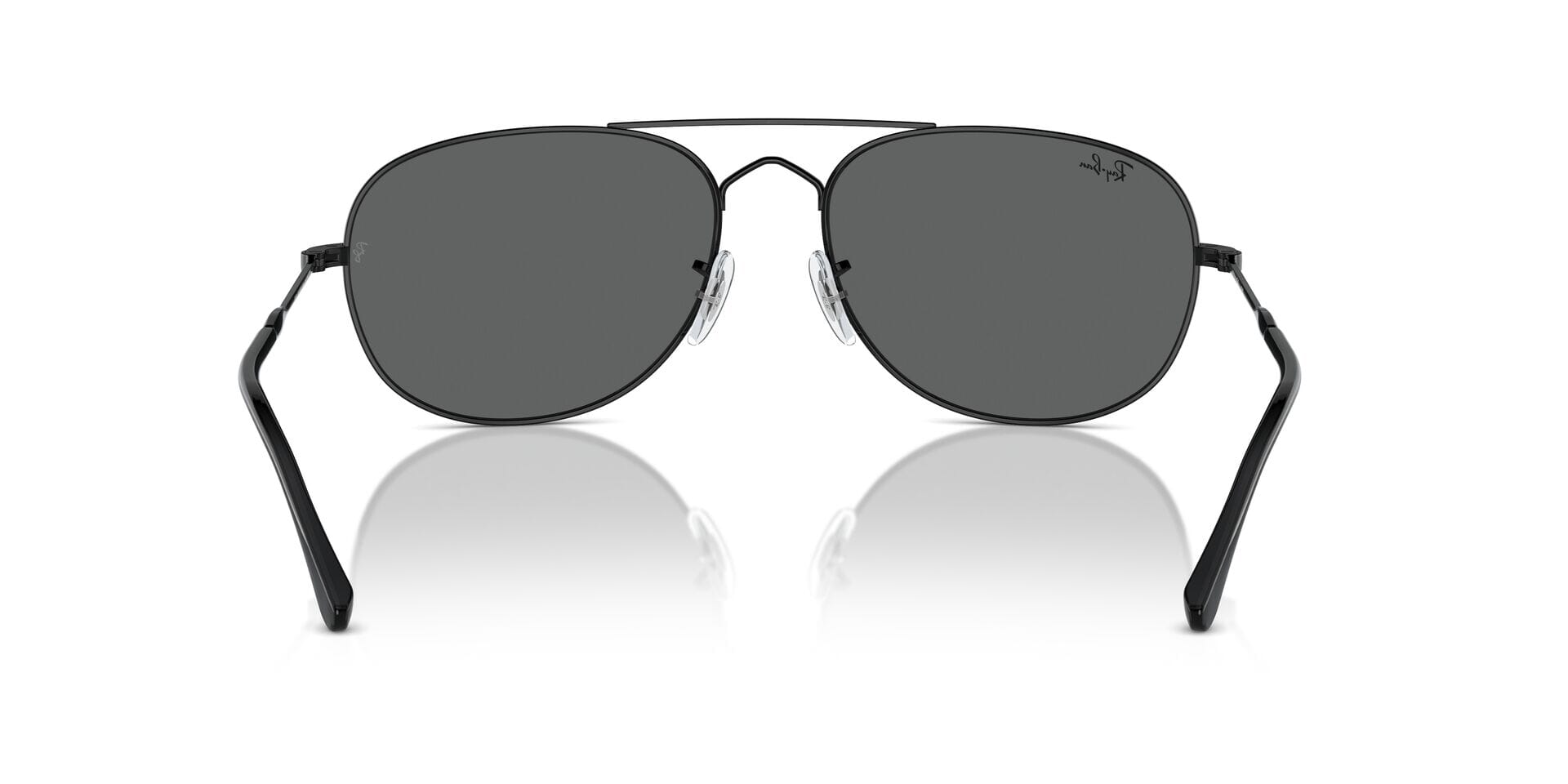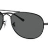 This round Ray-Ban sunglass comes in a black frame with dark grey lenses.