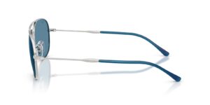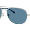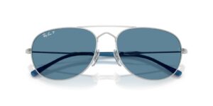 This round Ray-Ban sunglass comes in a silver frame with blue polarised lenses.