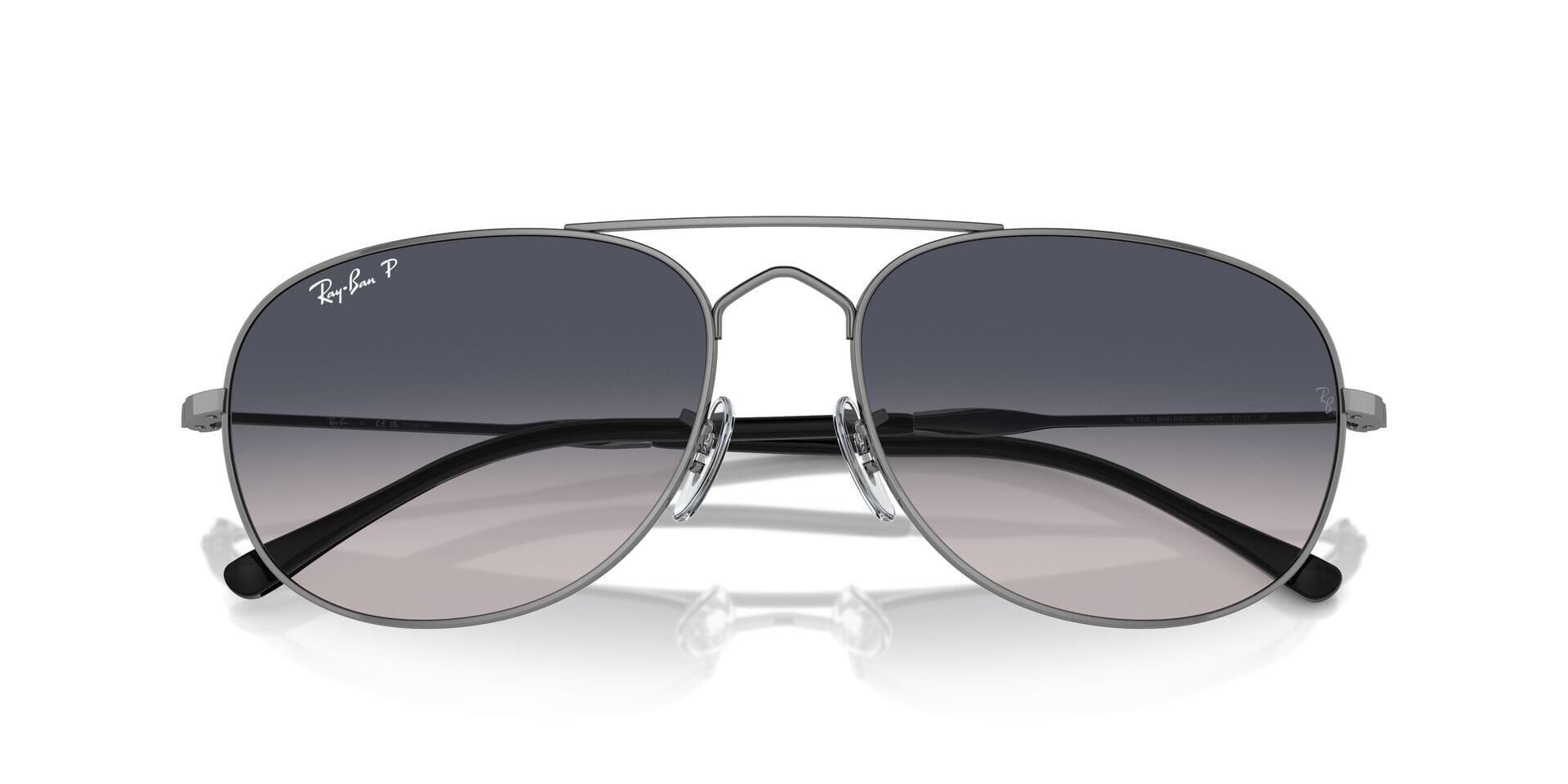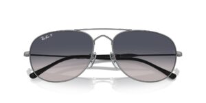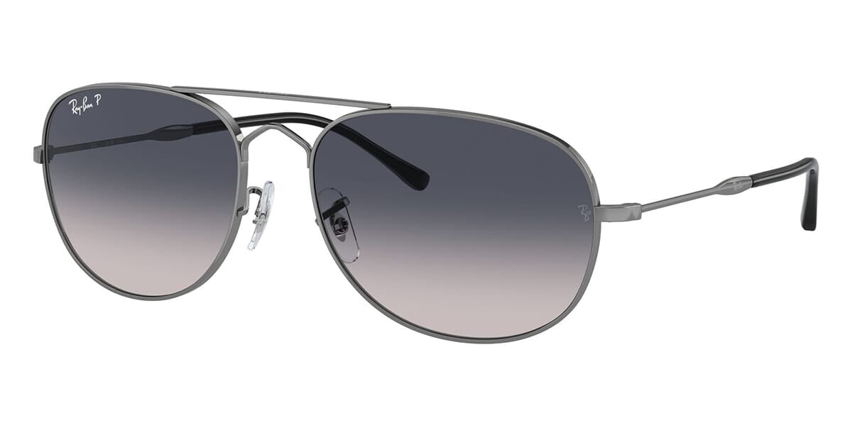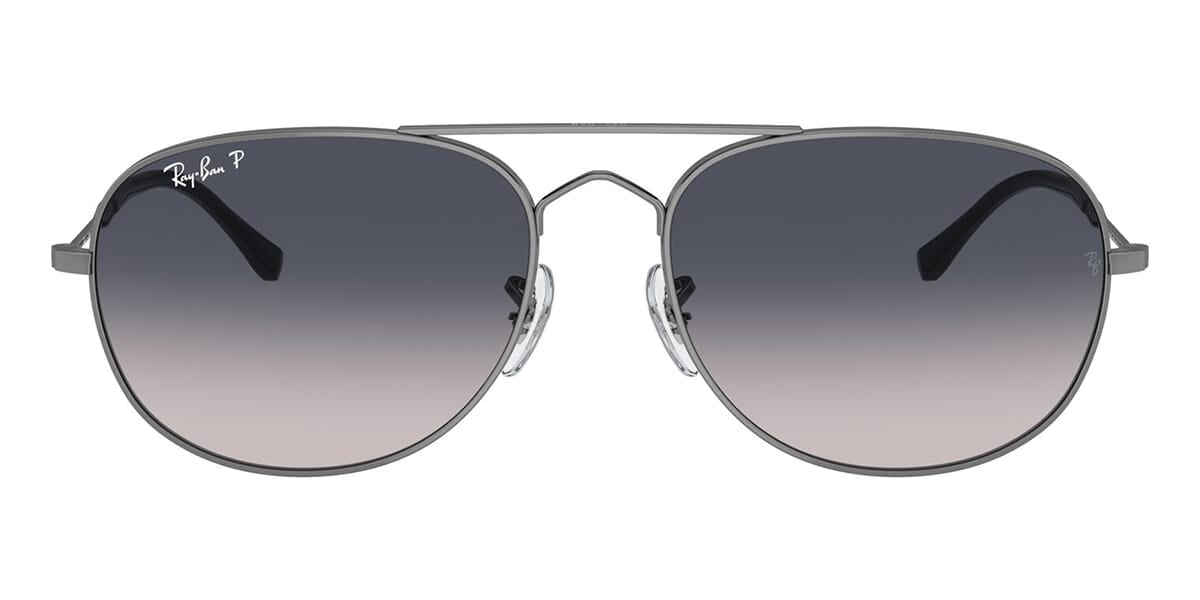 This round Ray-Ban sunglass comes in a gunmetal frame with blue gradient polarised lenses.