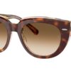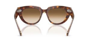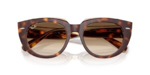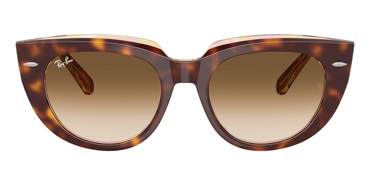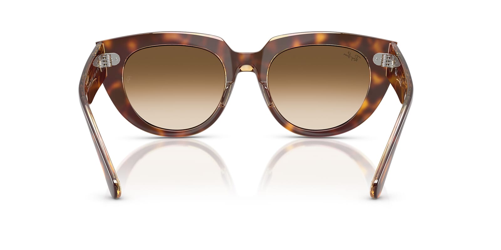 This cat eye Ray-Ban sunglass comes in a light havana on transparent multicolour frame with brown to clear gradient lenses.