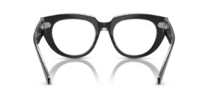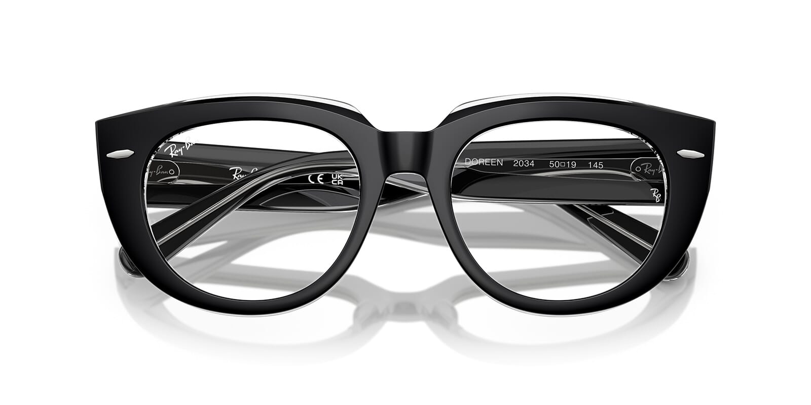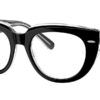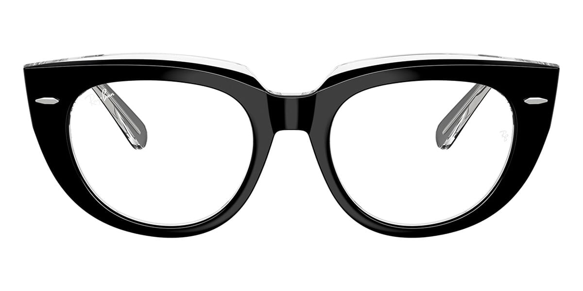 This cat eye Ray-Ban optical comes in a black on crystal frame.