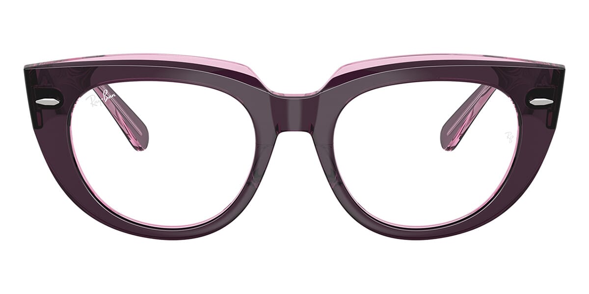 This cat eye Ray-Ban optical comes in a violet on pink crystal frame.