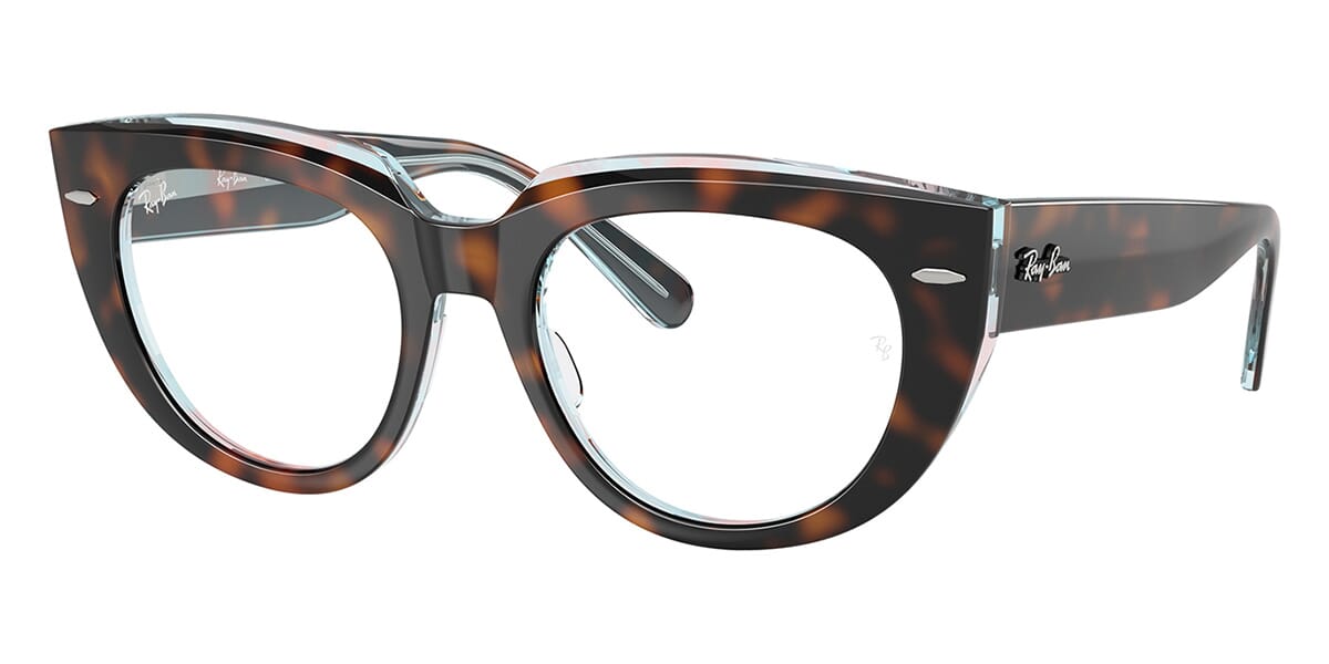 This cat eye Ray-Ban optical comes in a dark havana on multicolor frame.