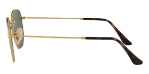 This square Ray-Ban sunglass comes in a gold frame with green polarised lenses.