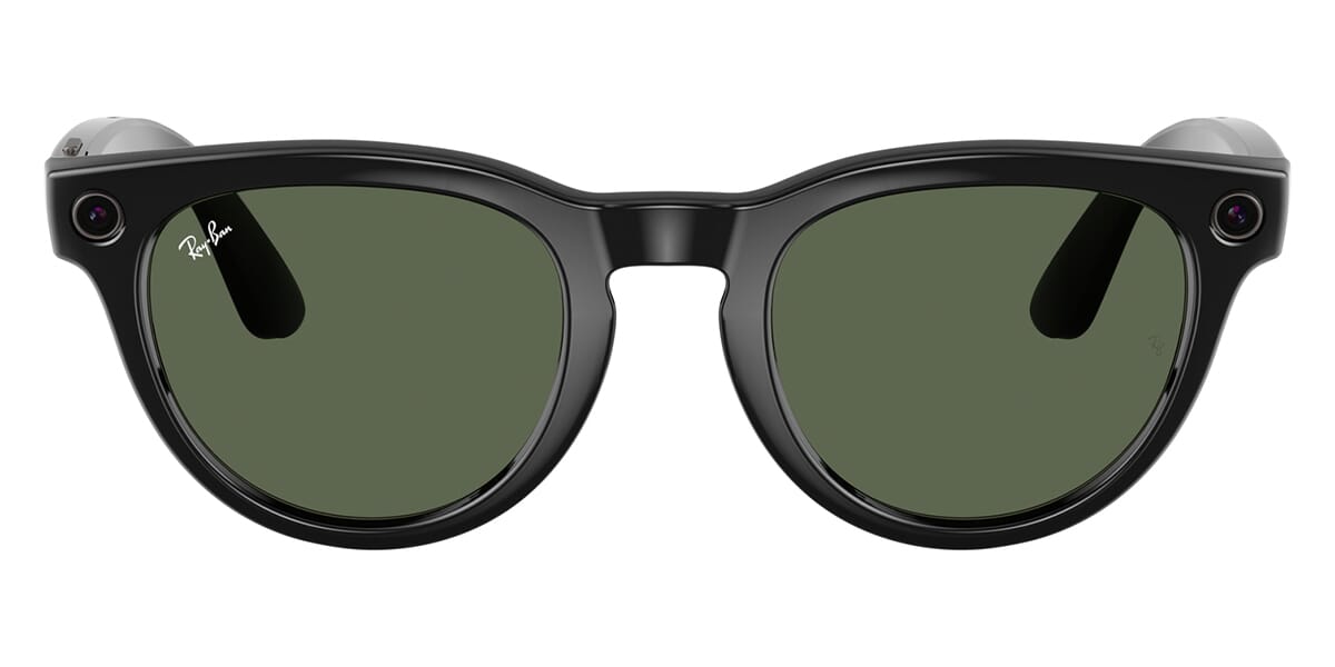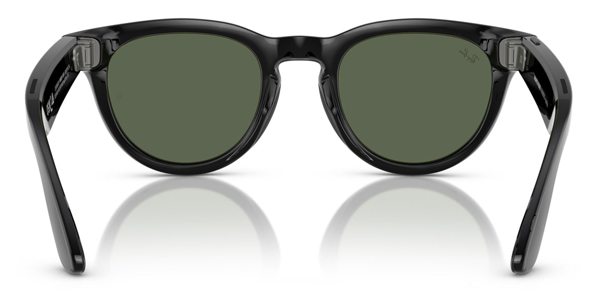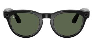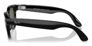 This round Ray-Ban sunglass comes in a shiny black frame with g15 green lenses.