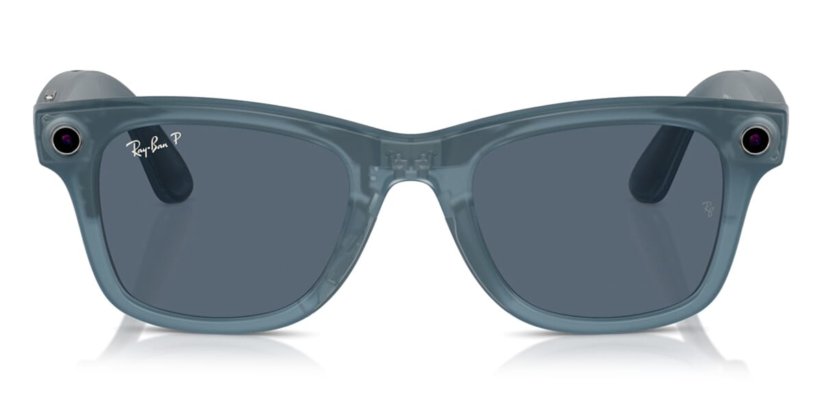 This wayfarer Ray-Ban sunglass comes in a jeans frame with dusty blue polarised lenses.