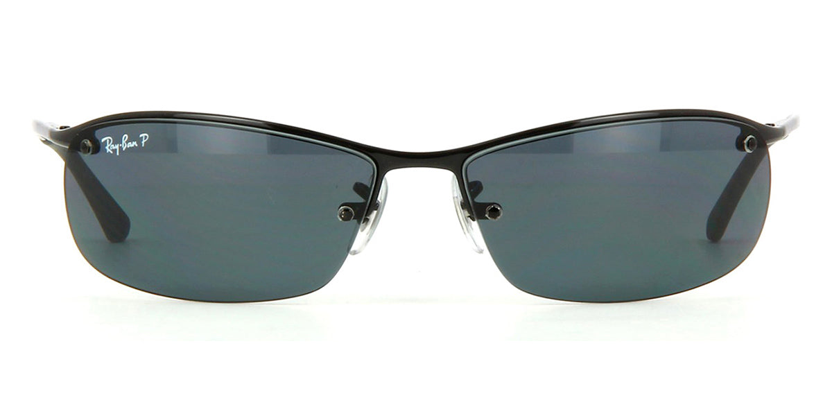 This round Ray-Ban sunglass comes in a shiny black frame with grey polarised lenses.